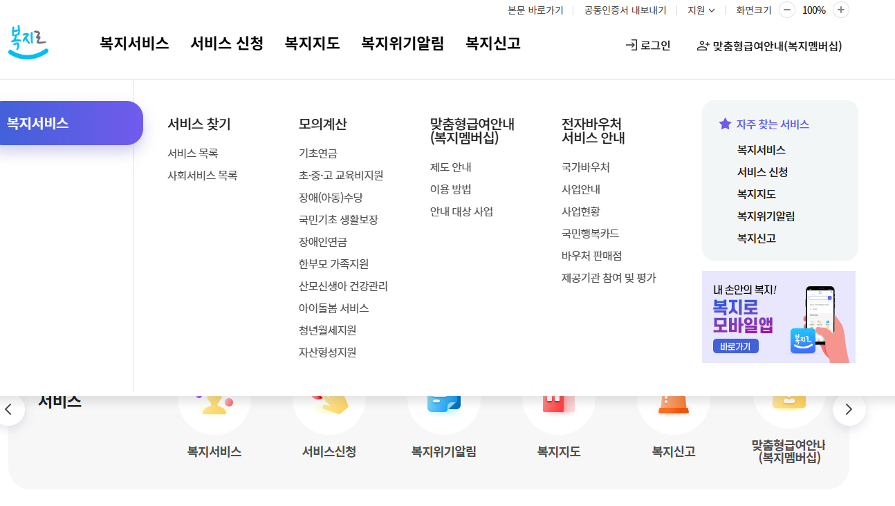 - 복지로 사이트 접속