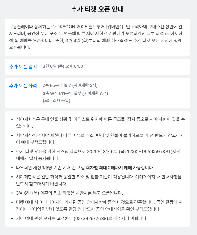 G-DRAGON 2025 월드투어 추가 티켓 오픈! 지금이 마지막 기회!