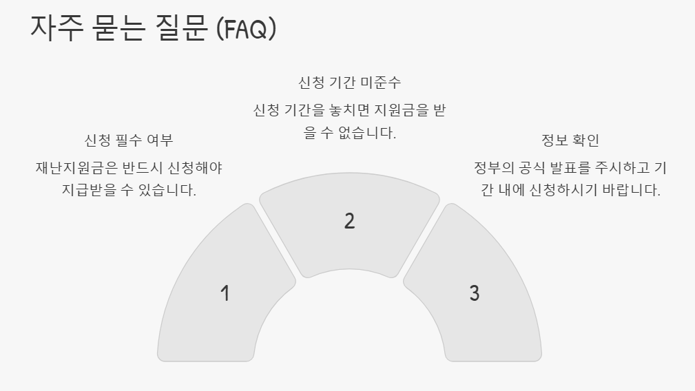 또한, 고양시와 같은 일부 지자체에서는 시민안전보험 가입을 통해 재난 발생 시 추가적인 지원을 제공하고 있습니다. 해당 지역 주민들은 지자체의 공지를 확인하여 추가 혜택을 놓치지 않도록 주의하세요.