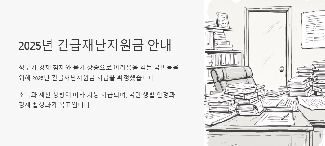 최근 정부는 경제 침체와 물가 상승으로 어려움을 겪는 국민들을 지원하기 위해 2025년 긴급재난지원금 지급을 확정했습니다. 이번 지원금은 소득 수준과 재산 상황에 따라 차등 지급될 예정이며, 국민 생활 안정과 경제 활성화를 목표로 하고 있습니다.